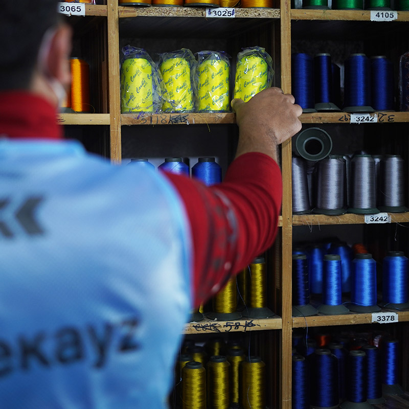 The suppliers of sewing threads are usually by local companies, but lots of different types of sewing threads are also import from China and Taiwan. Sewing threads are special kinds of yarns that are engineered and designed to pass through a sewing machine rapidly. We always use OKEO TEX & AZO free for our production.